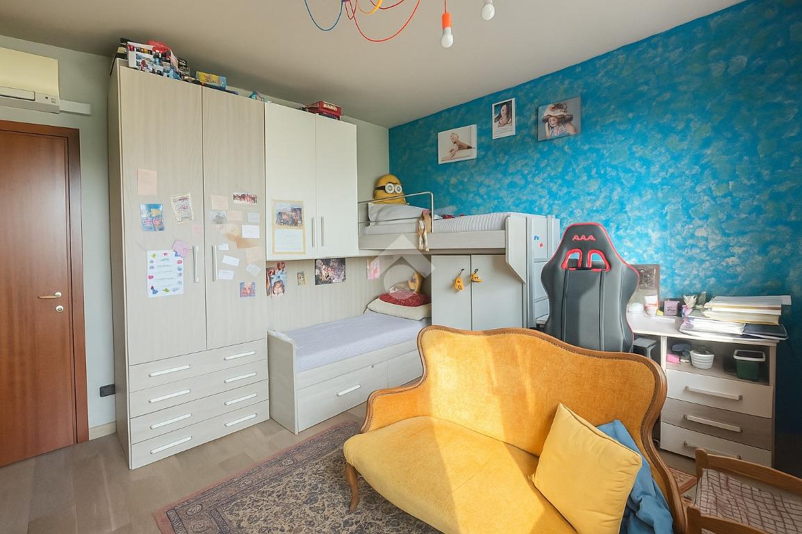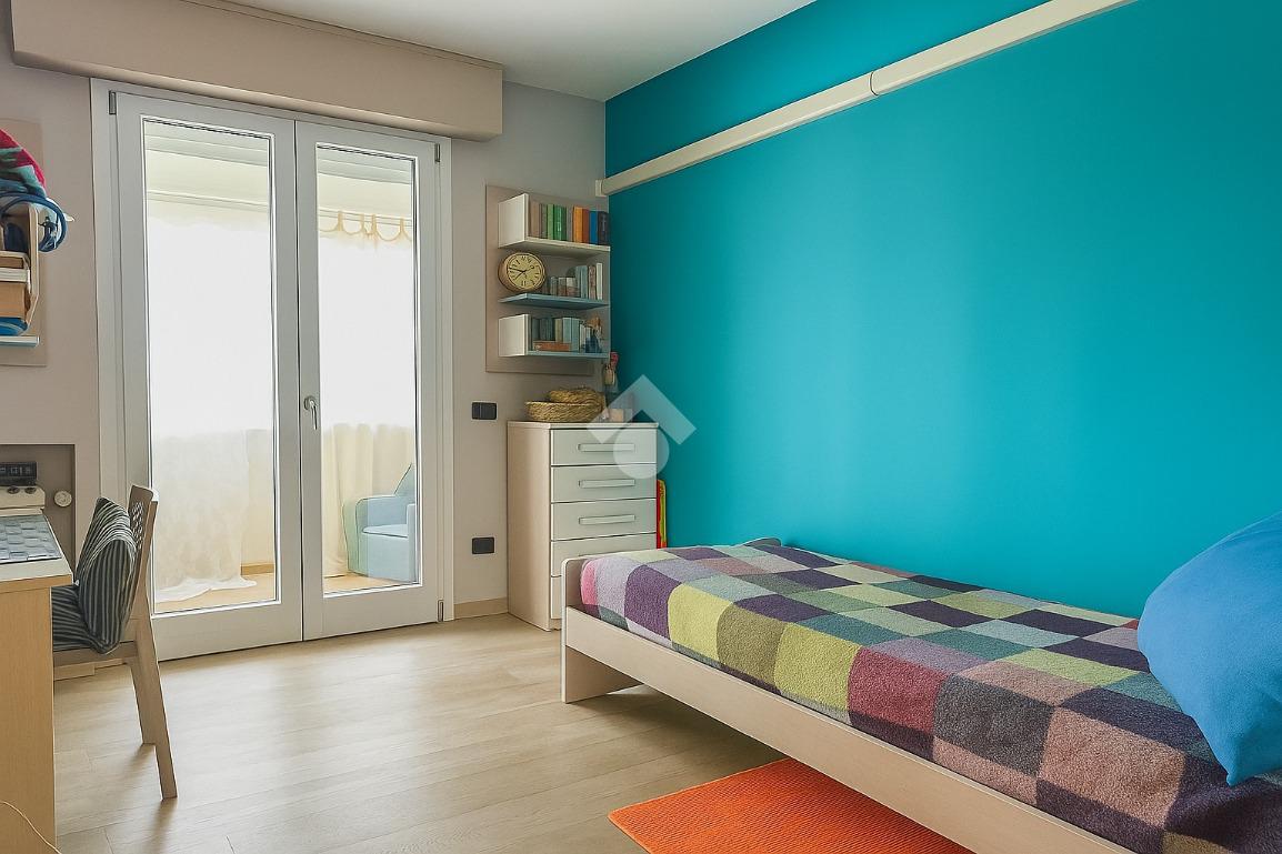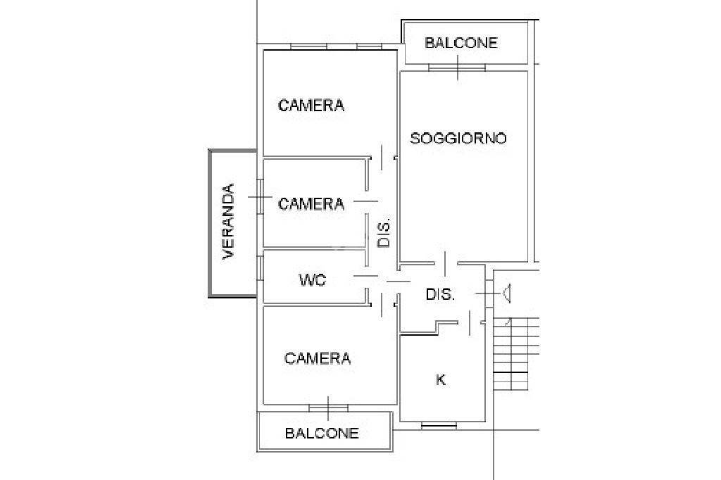 Il disimpegno distribuisce la zona notte composta da due camere matrimoniali di 14 e 15 mq, la camera singola di 9,70 mq con accesso alla veranda.