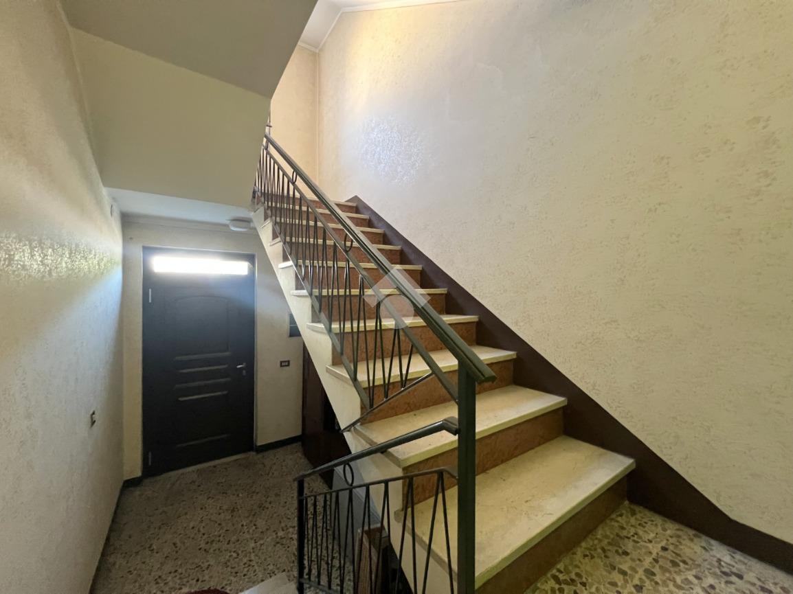 La porta blindata da accesso alla scalinata che conduce al primo piano dove si sviluppa la soluzione.