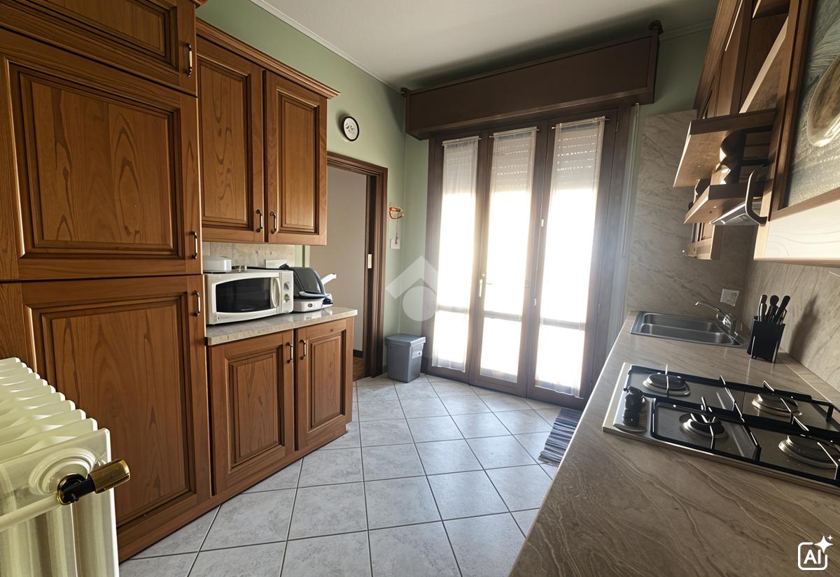 La cucina ed il soggiorno sono molto luminose grazie alla presenza della porta finestra che affaccia sulla balconata.
